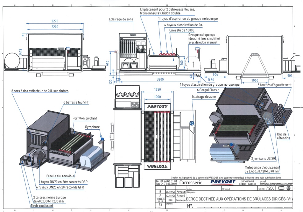 Cet équipement a pour particularité de posséder une citerne d’environ 1000 litres, un groupe motopompe autonome, un espace de rangement pour les matériels spécifiques de brûlages (battes à feu, torches, râteaux de grattage …) et les matériels de forestage (débroussailleuses et tronçonneuses). Elle pourra être utilisée de façon autonome sur un point d’eau naturel. Son armement spécifique en fait un équipement indispensable sur ce type d’opérations.