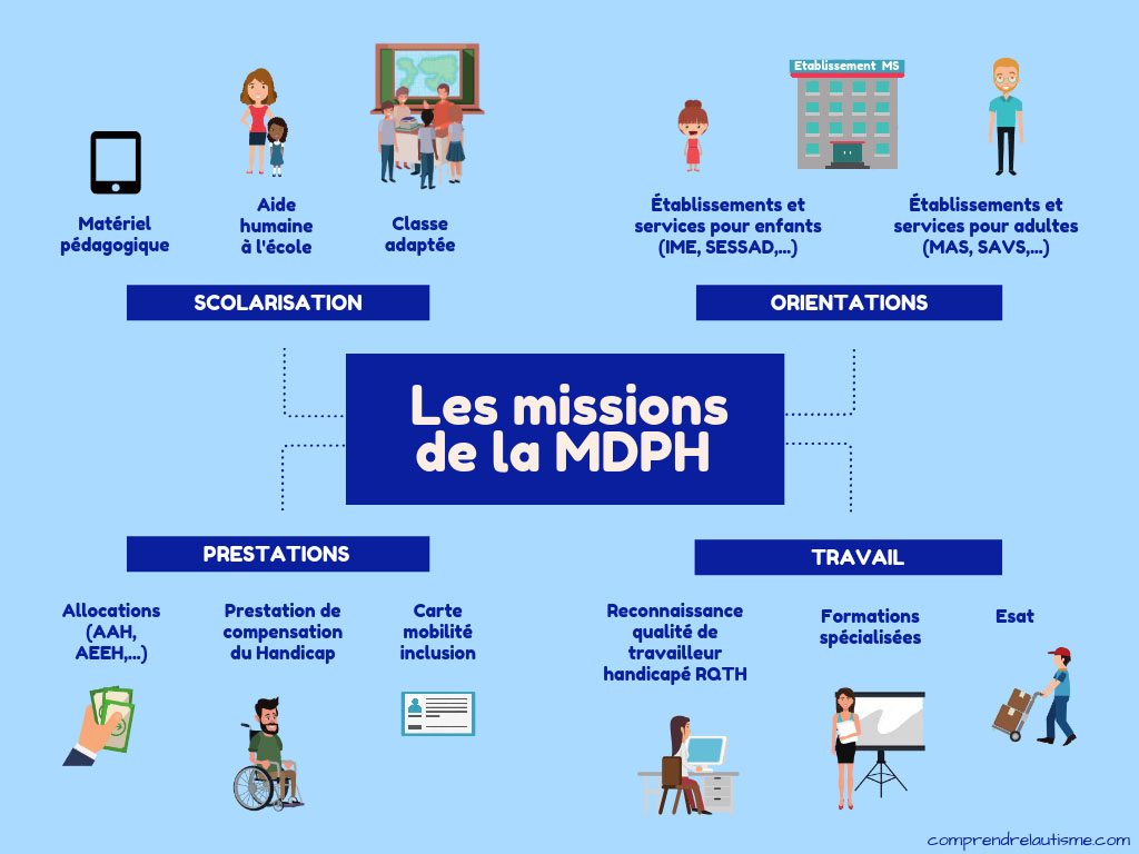 C’est le lieu unique où sont traitées les demandes pour bénéficier d’aides liées à la compensation du handicap. Elle a pour objectif :